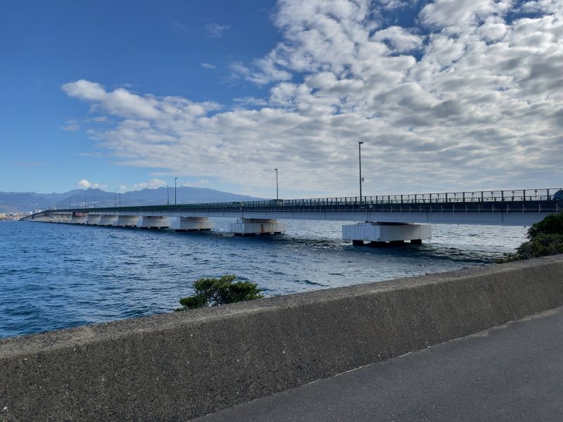 サンスパ駐車場から長崎空港までの往復をダウンジョグして体をほぐし