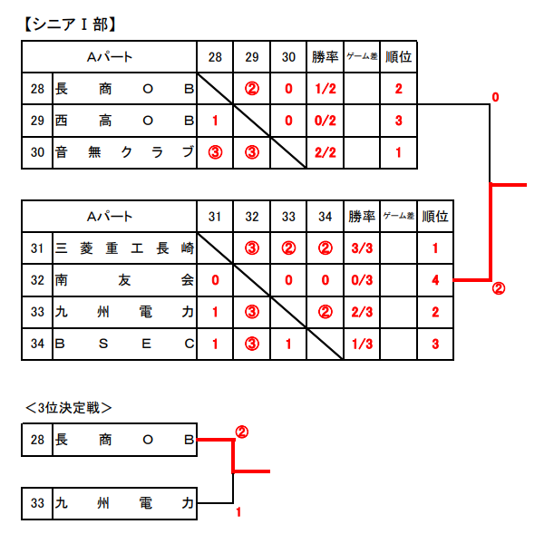 シニアⅠ部に西高OBシニアメンバー+助っ人1人で参戦してました